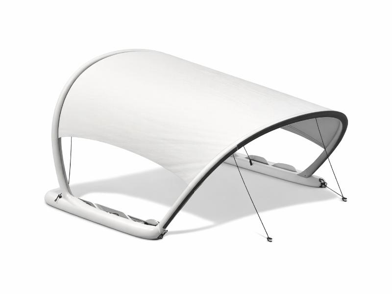 Тент изготовлен из прочных материалов, рассчитанных на использование в водной среде. Конструкция устойчива к ветровым нагрузкам и солнечному излучению.