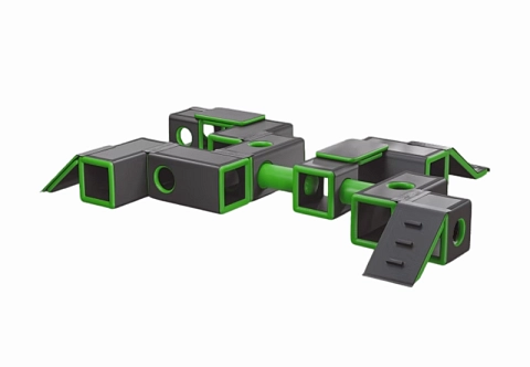 Игра с модульными элементами позволяет ребенку активно развиваться физически и эмоционально.