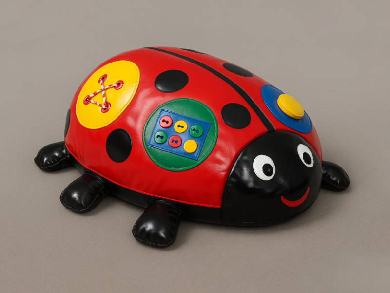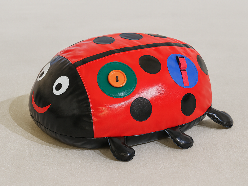 Дидактический мягкий модуль имеет форму божьей коровки. На ее «спинке» расположены различные игровые элементы: шнуровка, застежка, пуговицы, молния – для развития мелкой моторики малышей. «Божья коровка» является объектом многих детских игр, стихов, прибауток, загадок, потому всегда привлекает внимание ребятишек.