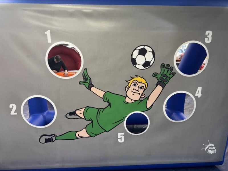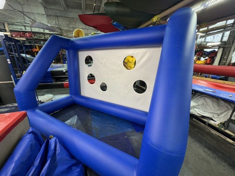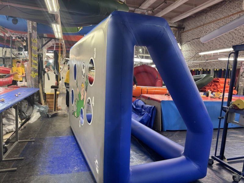 Надувной Аттракцион точный гол представляет собой надувные ворота, в которых есть несколько отверстий. Цель игрока — попасть футбольным мячом в одно из них. Для придания соревновательного духа игре, на воротах может стоять голкипер.