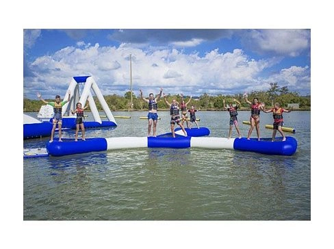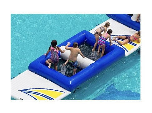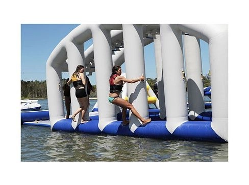 На аттракционе имеется лестница и специальная платформа для удобного подъема. Данный аттракцион способен вмещать до двух участников одновременно. Вы можете присоединить его к системе аквапарка с помощью специальной системы крепежей с одной стороны.