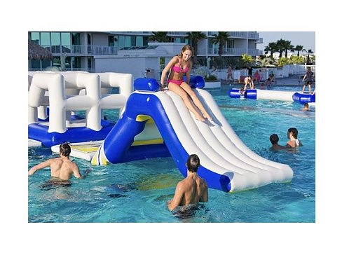Платформа может быть использована как часть аквапарка для непрерывного веселья. Она может служить зоной отдыха, а благодаря сетчатой поверхности, вы можете использовать ее как мини-бассейн. Сетчатое дно облегчает пребывание на платформе и позволяет вам в любой момент отдохнуть. Сверхпрочные ручки обеспечивают безопасное взбирание на платформу, предотвращая падение в воду. Легкость сборки аттракциона также может привлечь ваше внимание, поскольку его нужно просто надуть, и он готов к использованию.