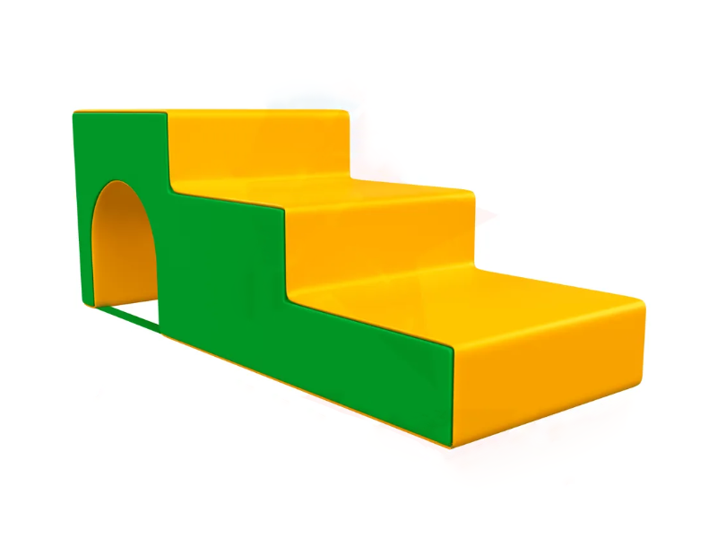 Составной модуль из двух компонентов "Арка лестница" используется как вспомогательный инвентарь в гимнастических и развивающих центрах. По нему можно перемещаться, подниматься или спускаться, кувыркаться, использовать как препятствие для перепрыгивания, пр. Компоненты скрепляются между собой содинительными лентами, а так же используются по-отдельности.