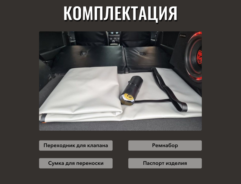 Матрас укладывается поверх сложенных сидений, превращая салон в просторное спальное место для двоих взрослых. Для примера: размеры 190×130×10 см – это полноценная кровать. При необходимости мы сделаем матрас с вырезами под элементы салона – подстаканники, арки или другие детали.