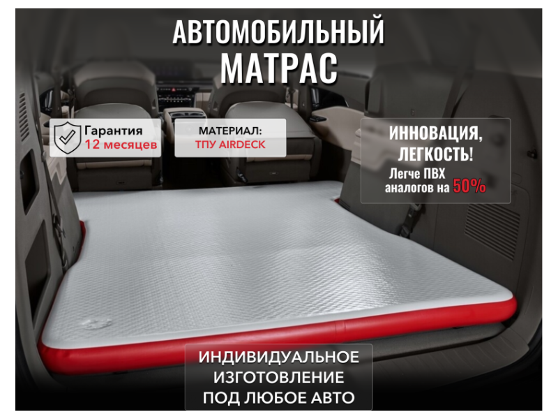 Компания «ТаймТриал» изготавливает надувные матрасы AirDeck TPU под заказ – в нужных размерах, цветах и даже с брендированием. Такой матрас станет отличным подарком для автопутешественников, рыбаков, охотников и всех, кто любит свободу на колесах.