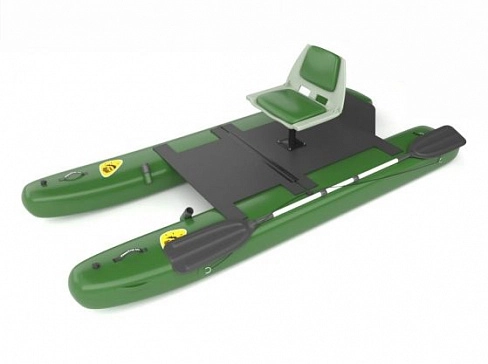 Кресла раскладываются и пристегиваются к раме, а грузовой бокс, куда кладутся напитки, закуски, смартфоны и прочие вещи, устанавливается в емкость между двумя креслами. На сапмаран легко установить электрический мотор, закрепив его на специальном креплении рамы. Можно обойтись и без мотора — плыть на веслах, что тоже весьма удобно.