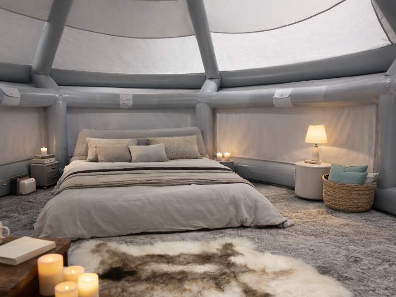 Надувная глэмпинг-палатка — это современное решение для создания премиального пространства отдыха на природе, сочетающее мобильность, дизайн и высокий уровень комфорта. Конструкция с пневмокаркасом формирует устойчивую и герметичную форму, позволяя быстро развернуть полноценное жилое пространство без сложного монтажа. Такая палатка идеально подходит для глэмпингов, баз отдыха, эко-отелей и частного использования.