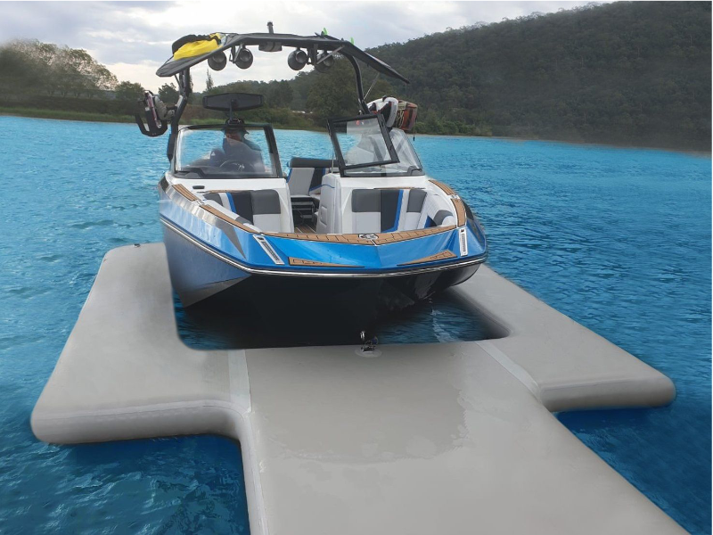Главная особенность платформы — U-образная форма, которая образует внутреннюю нишу для размещения лодки или катера.
