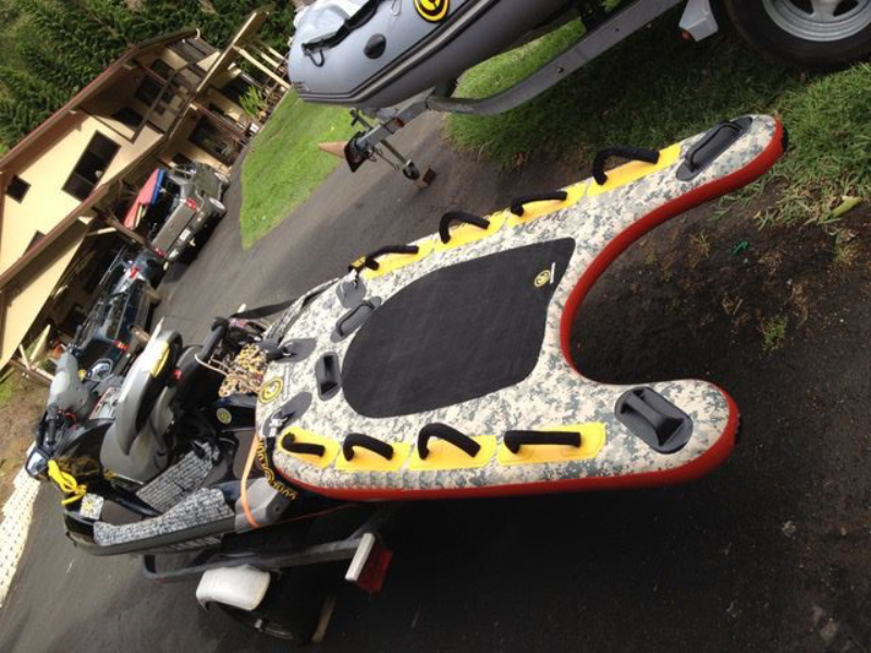 Палуба крепится к гидроциклу с помощью прочных нейлоновых ремней, легко надувается и при необходимости компактно складывается для хранения и транспортировки. При этом конструкция не мешает управлению гидроциклом и не влияет на его кильватер при движении.
