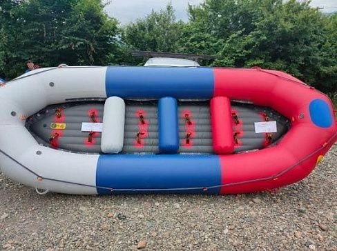 Размеры рафта позволяют достаточно комфортно разместиться 6 гребцам с необходимым снаряжением, а также водному гиду.