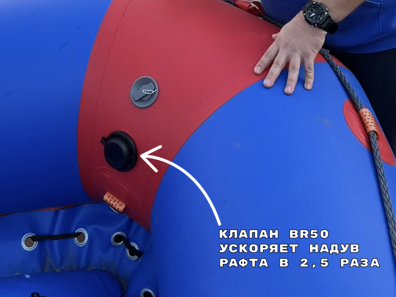 Этот рафт создан для тех, кто ценит скорость и удобство. Его главное отличие от классической версии – новая компоновка корпуса: вместо четырёх секций здесь всего две, перегородки расположенны по диагонали. Такая конструкция позволяет значительно ускорить подготовку судна к сплаву. В сочетании с большим клапаном BR50 рафт полностью надувается всего за две с половиной минуты – это можно сделать даже обычной воздуходувкой.